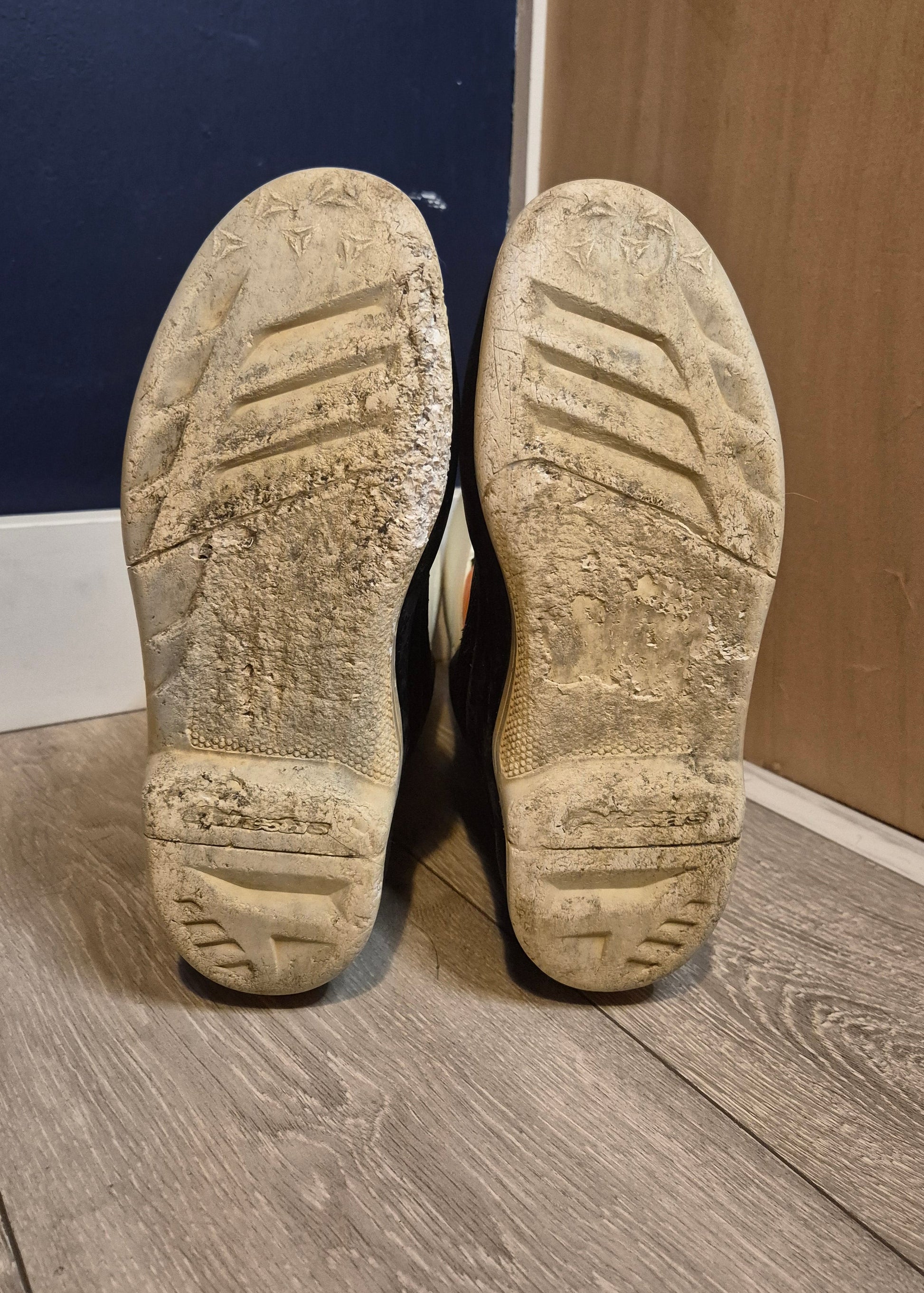 These are in good used condition, still very clean and bright. There is some light wear to the soles and some of the blue colour has peeled from the rear heel area as can be observed in the images.